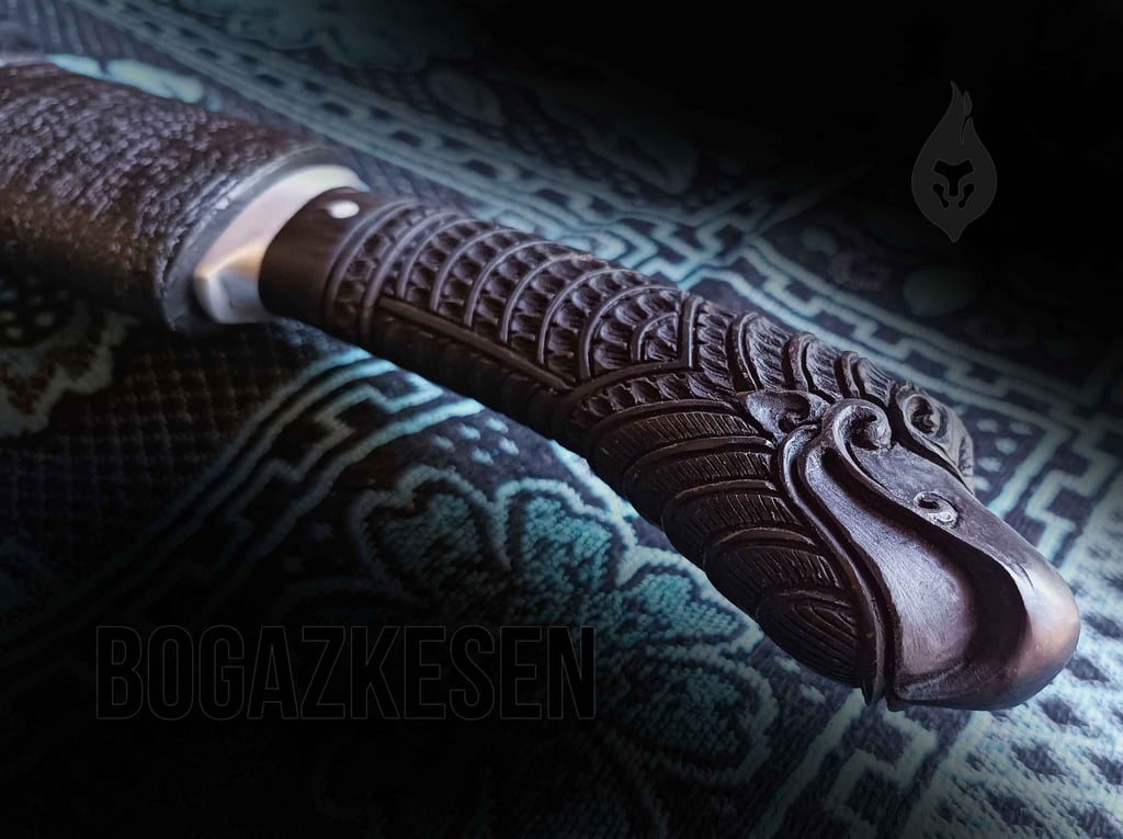 One of the many type of traditional Golok handle is called soang ngajat handle, soang means goose, which is described by the shape of the machete handle resembling a tilted up goose's head.