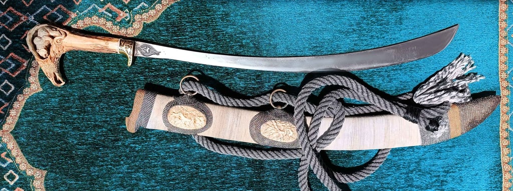 Sheath Material: Rosewood, cotton thread bindings, iron wire reinforcement, antler accents
