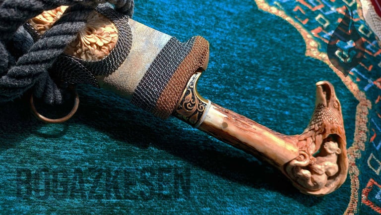 Handle Material: Carved deer antler with brass fittings, pinned for strength