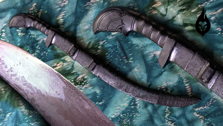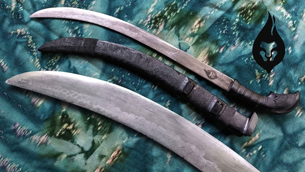 This handcrafted blade features a 52 cm wootz/Damascus steel blade with a strong 5 mm spine that tapers gracefully for excellent balance and cutting performance. The 16.5 cm handle and 9 cm grip provide a secure, comfortable hold. The hardwood scabbard and handle are paired with iron chain details and hardened wool thread, adding durability and a traditional aesthetic. A refined piece for collectors, practitioners, and enthusiasts alike.